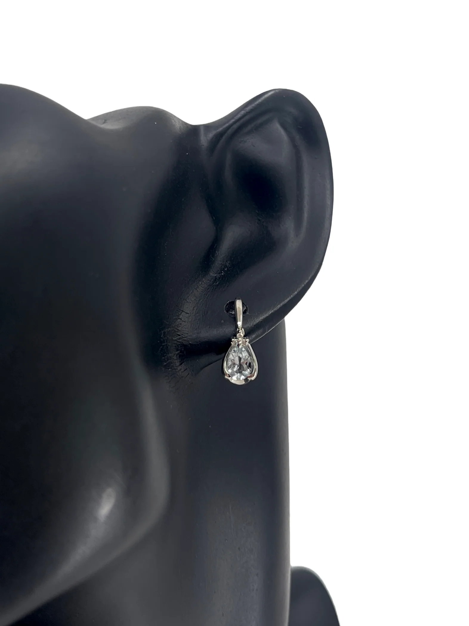 10K White Gold 0.70cttw Genuine Aquamarine Pear Cut & 0.03cttw Diamond Stud / Dangle / Drop Earrings