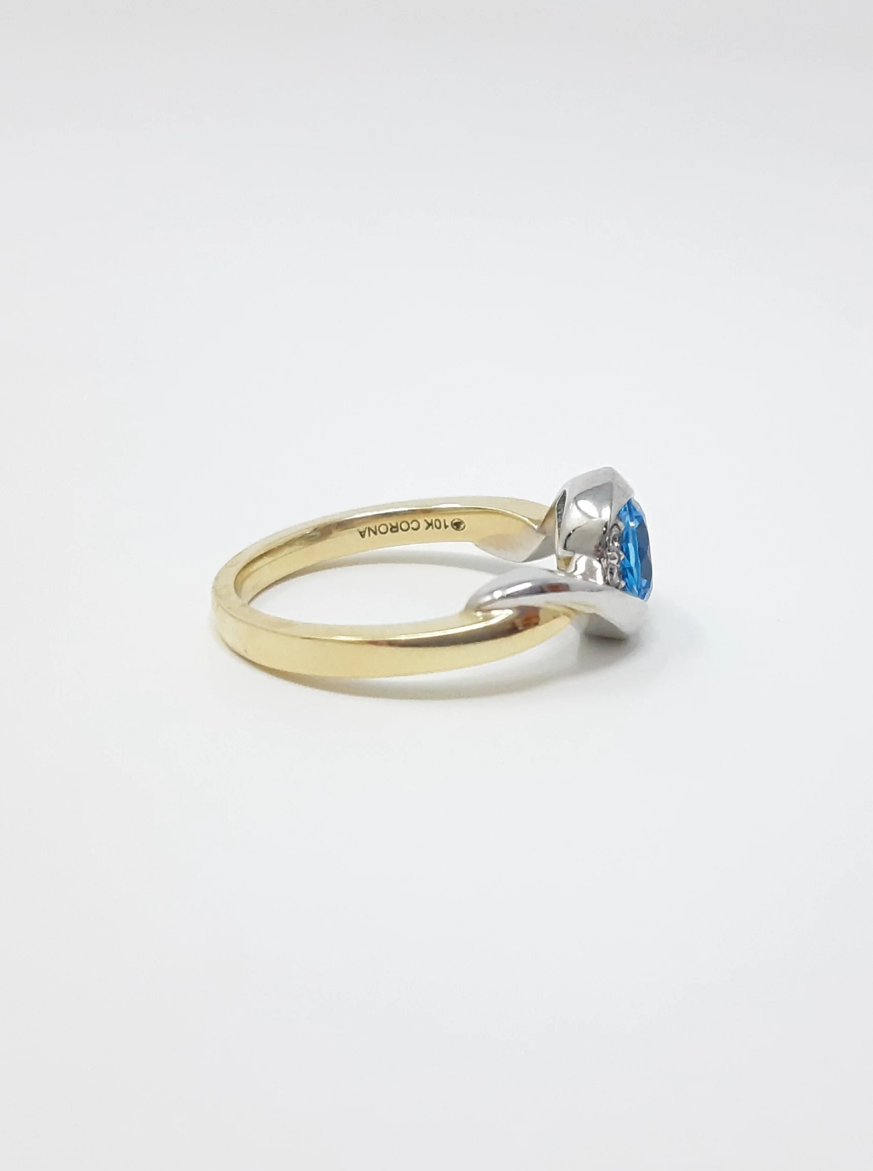 - Beautiful 10k two-tone Gold Blue Topaz and Diamond Ring