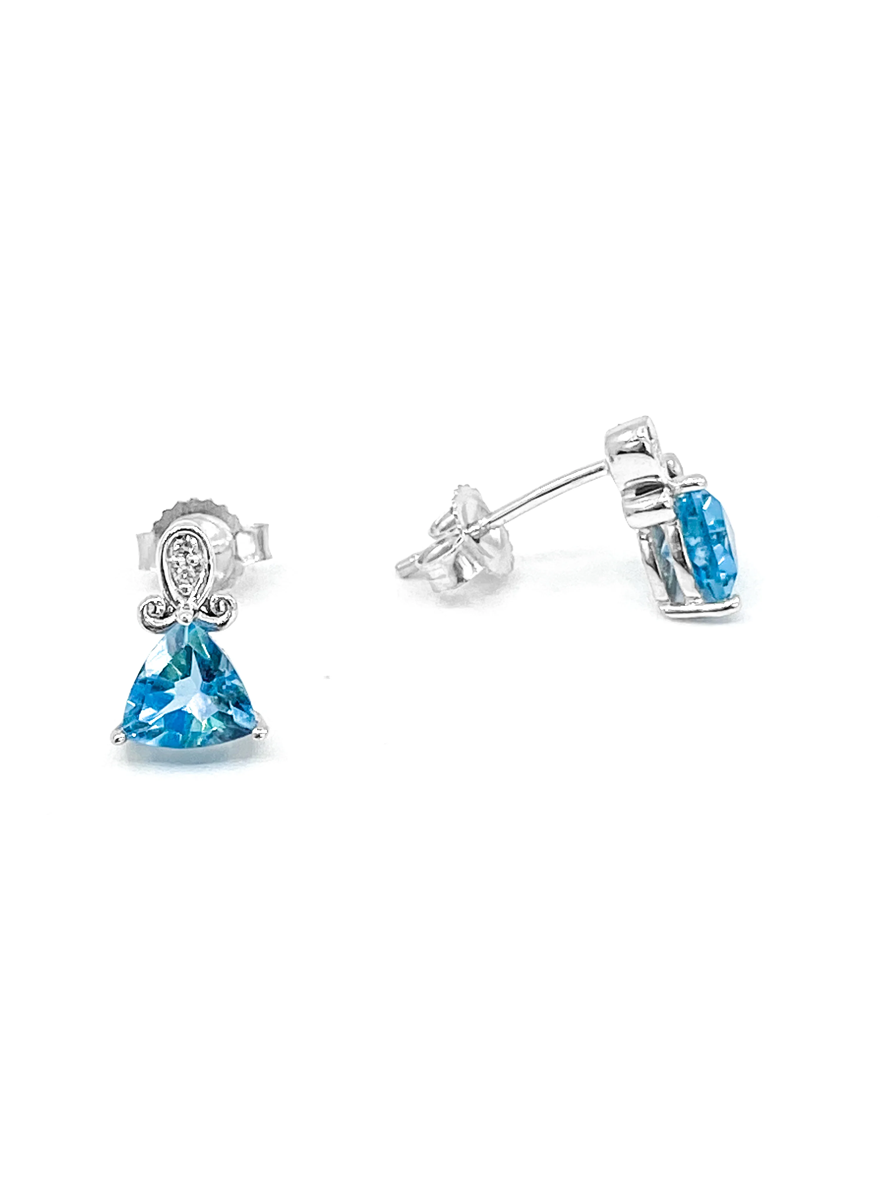 10K White Gold 1.20cttw Genuine Blue Topaz & 0.017cttw Diamond Earrings