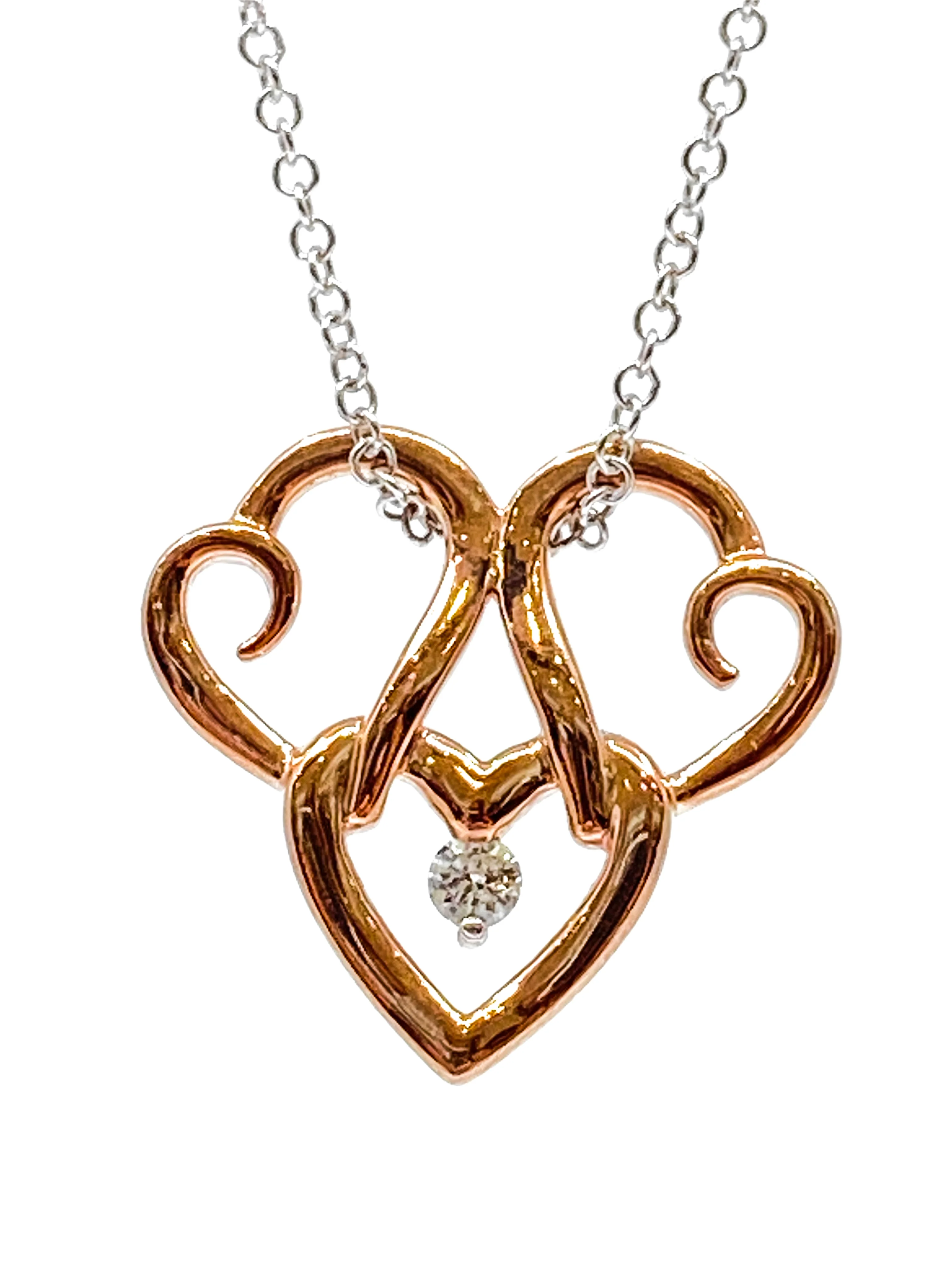 10K Rose & White 0.043cttw Canadian Diamond Triple Heart Pendant, 18"