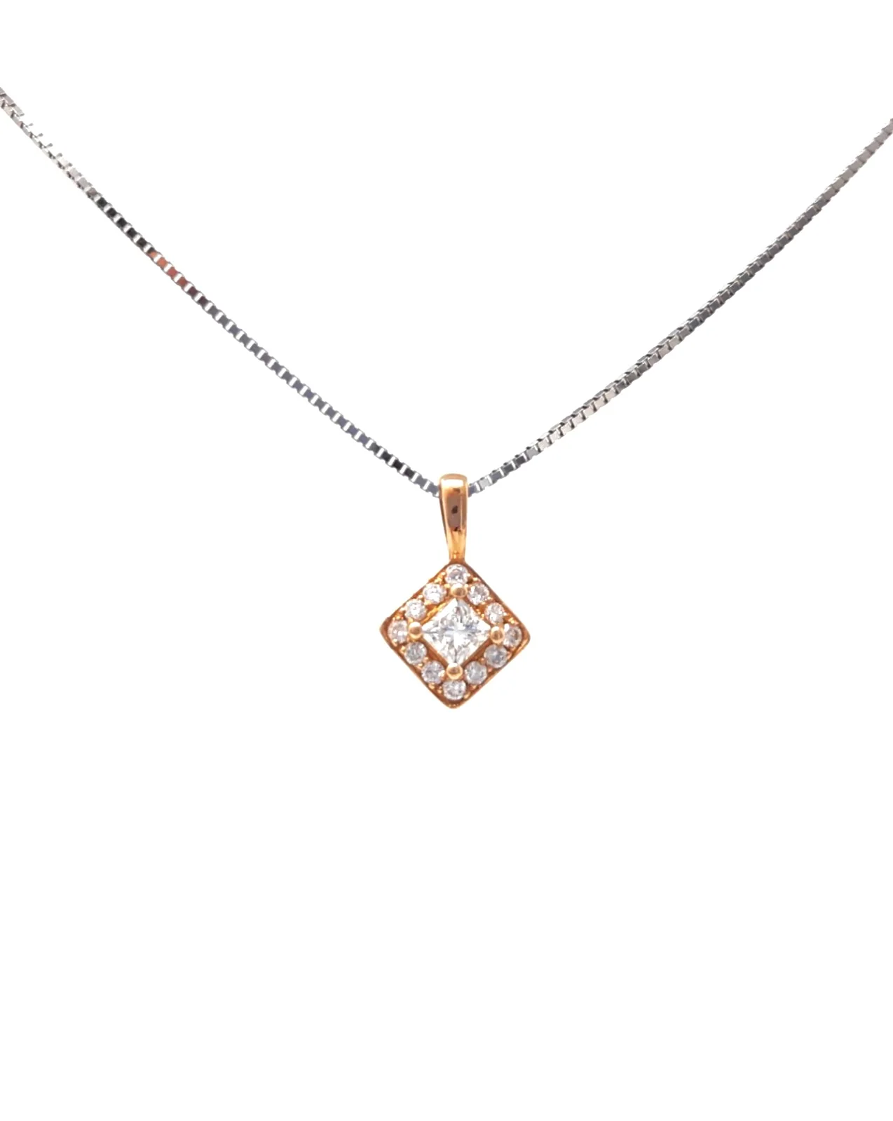 - 14K 2 Tone Princess-cut Canadian Diamond Pendant
