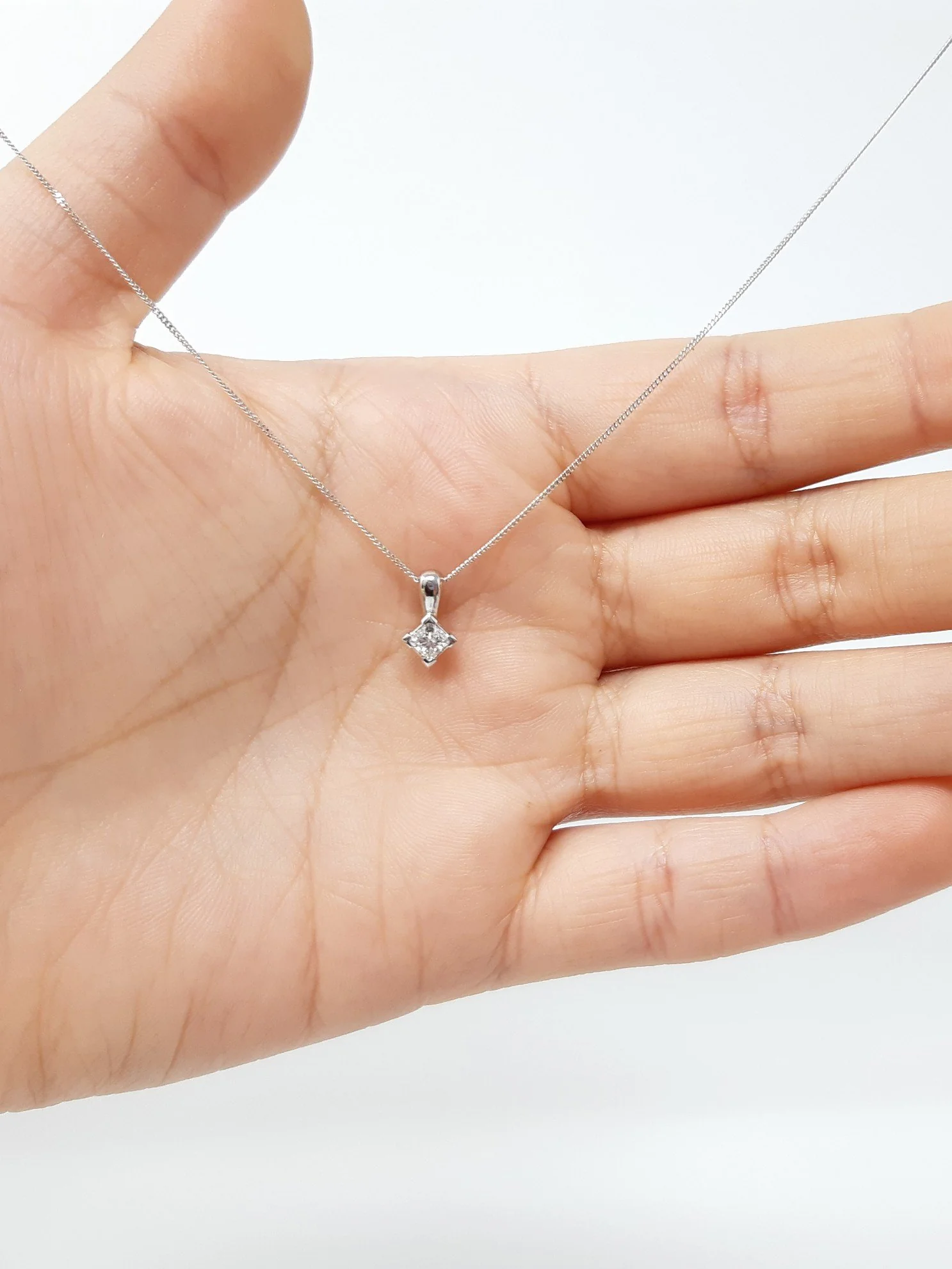 18K White Gold 0.15cttw Princess Cut Canadian Diamond Pendant, 18"