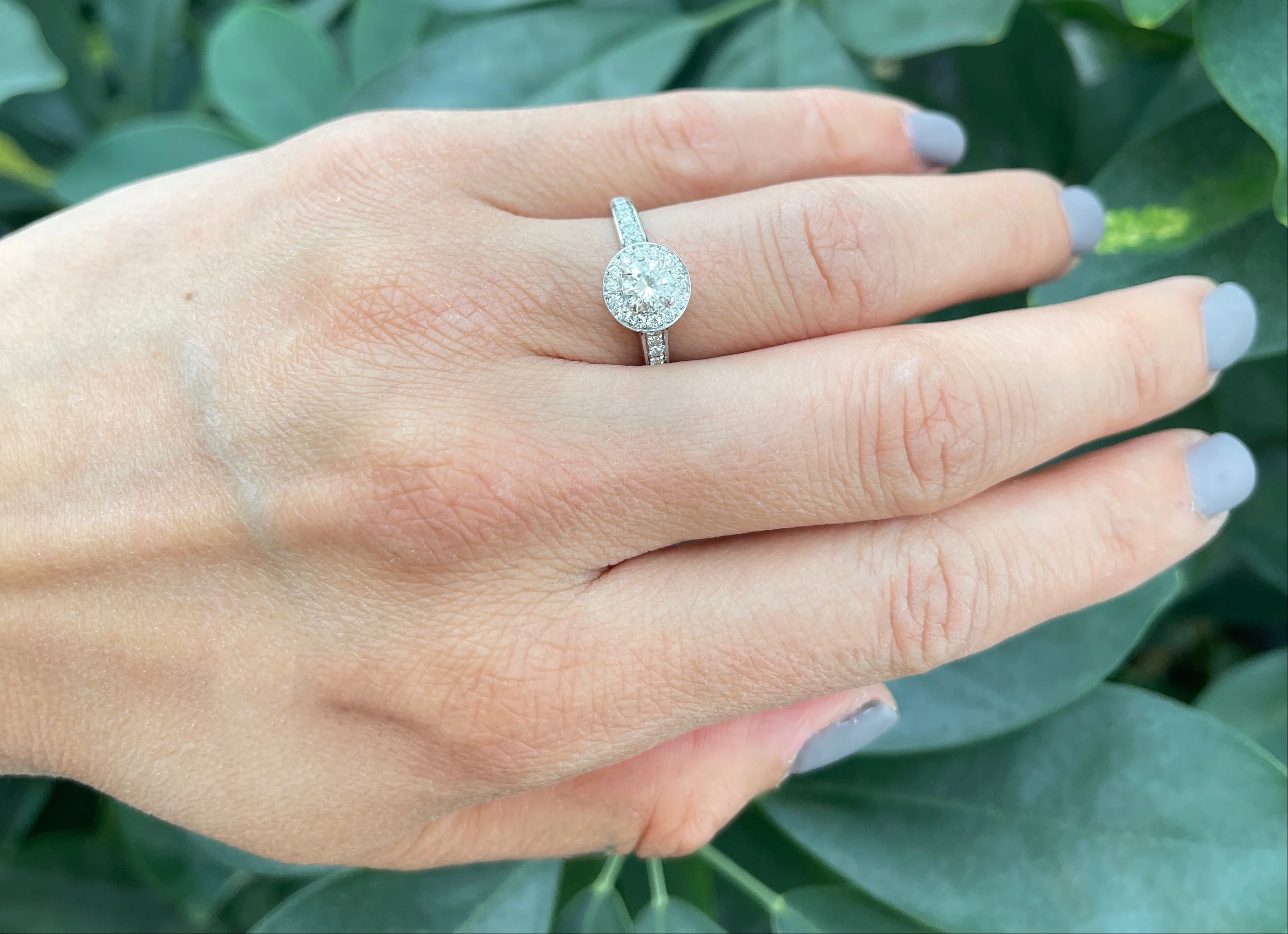 14K White Gold 0.77cttw Diamond Halo Engagement Ring, size 6