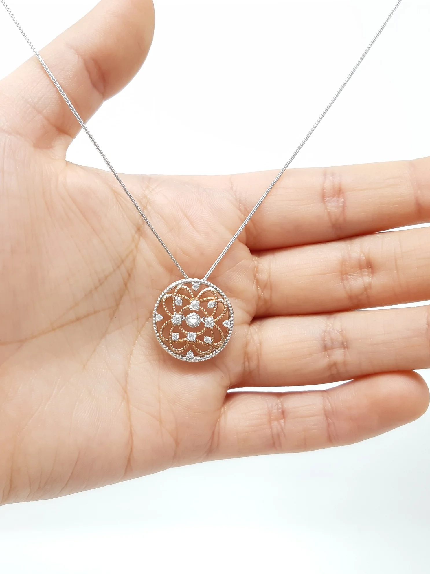 - 10K 2 tone diamond pendant