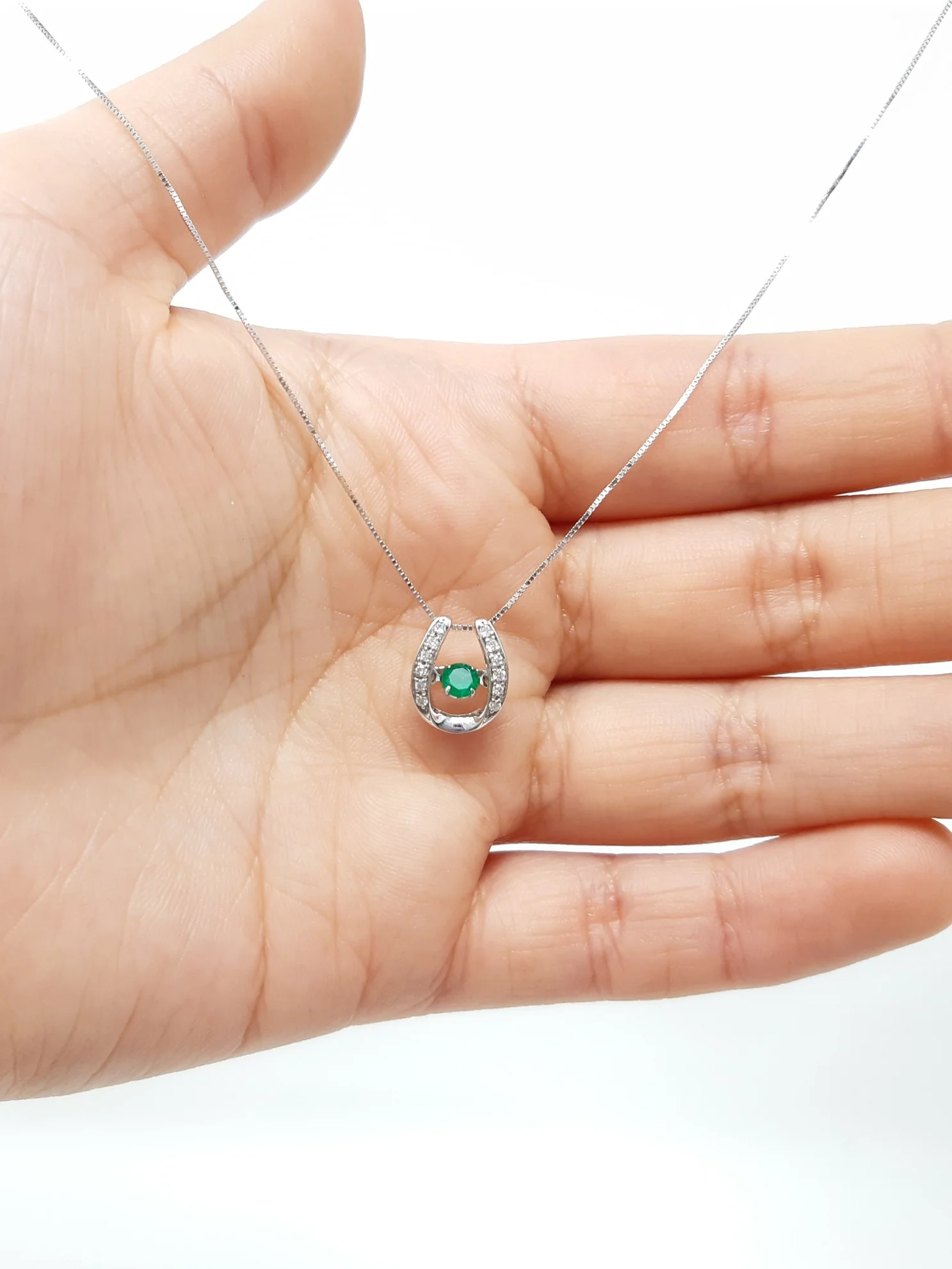 10K White Gold 0.15cttw Round Cut Genuine Emerald and0.07cttw Round Cut Diamonds Necklace, 18”