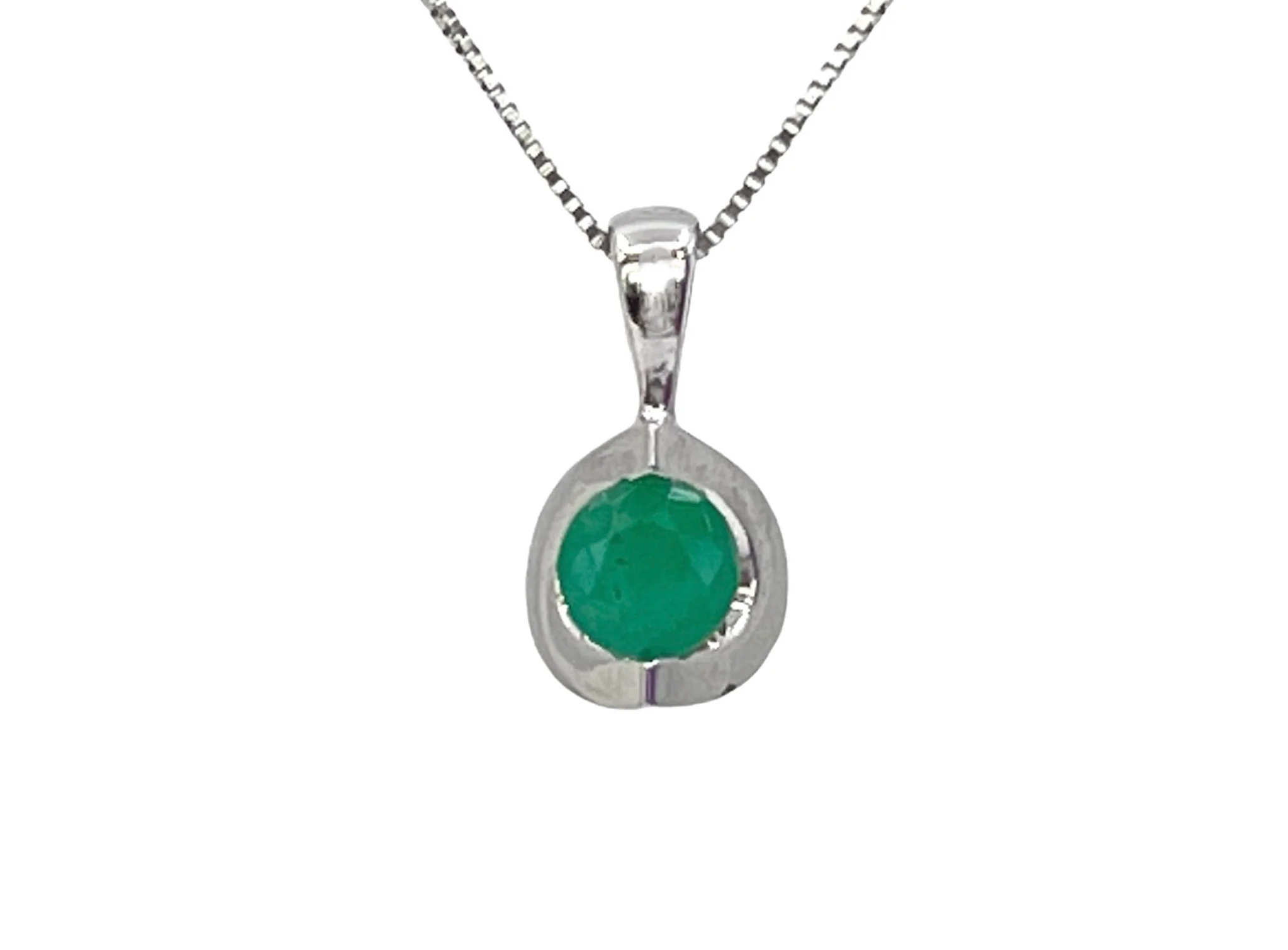 10K White Gold Emerald Pendant, 18"